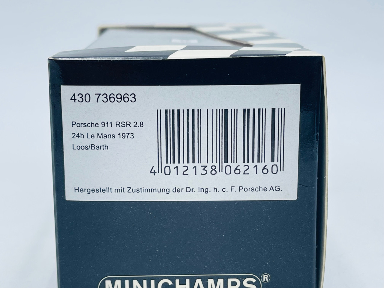 MINICHAMPS 430736963 PORSCHE 911 Carrera RSR 2.8 n°63 Le Mans 1973 Loos-Barth 1.43
