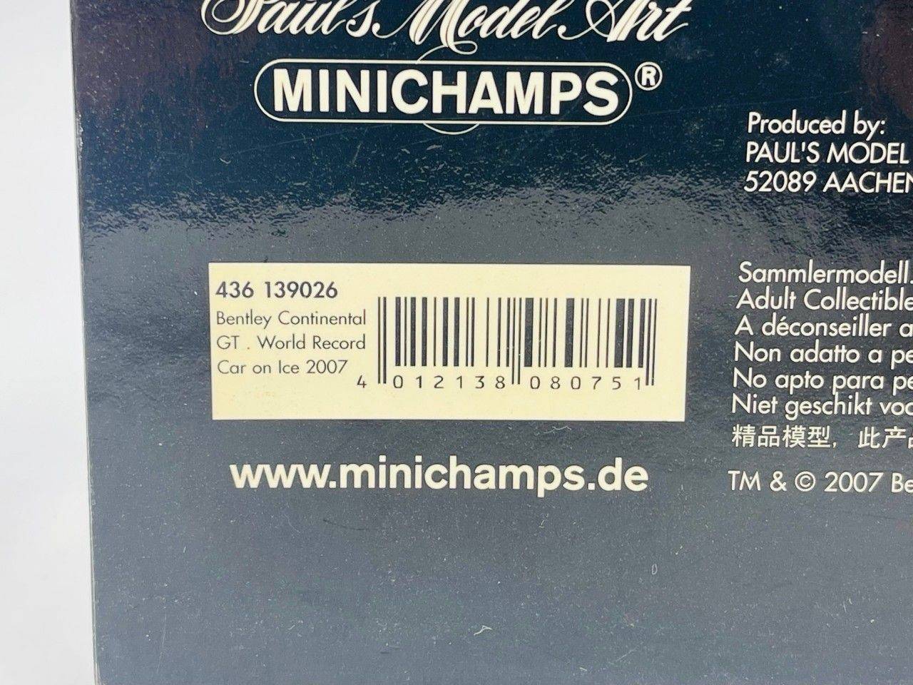 MINICHAMPS 436139026 BENTLEY Continental GT World Record Car on Ice 2007 1.43
