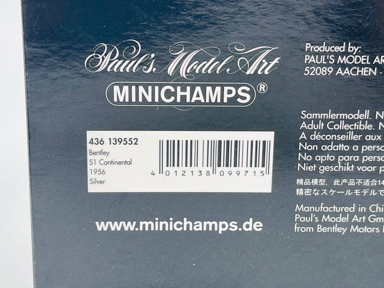 MINICHAMPS 436139552 BENTLEY S1 Continental 1956 Silver 1.43