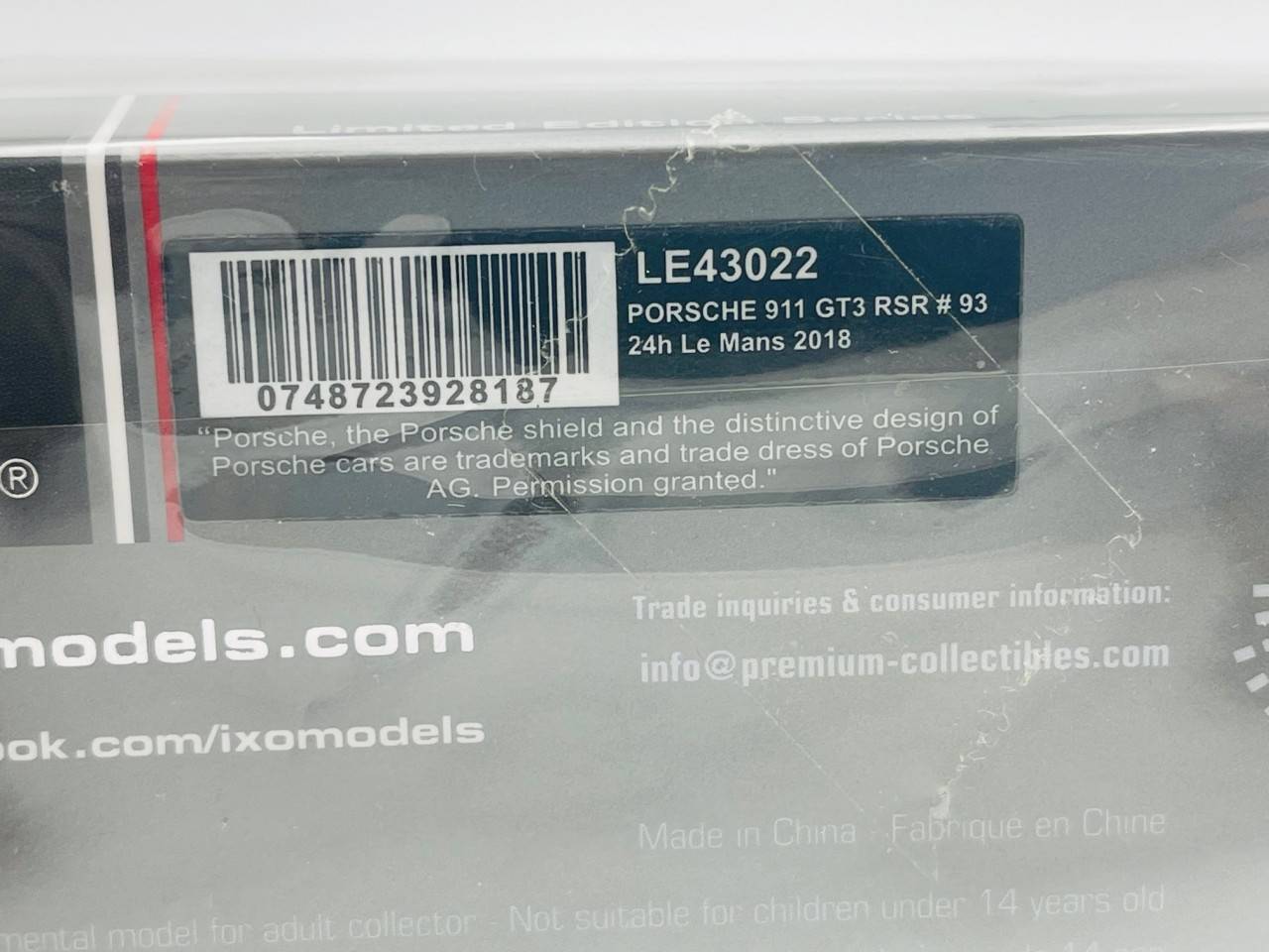 IXO LE43022 PORSCHE 911 GT3 RSR n°93 le Mans 2018 Pilet-Tandy-Bamber 1.43