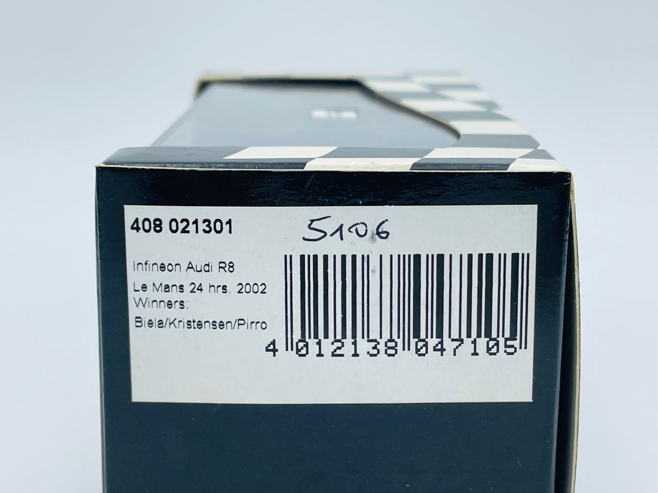 MINICHAMPS 408021301 Infineon AUDI R8 n°1 Winner Le Mans 2002 Biela-Kristensen-Pirro 1.43