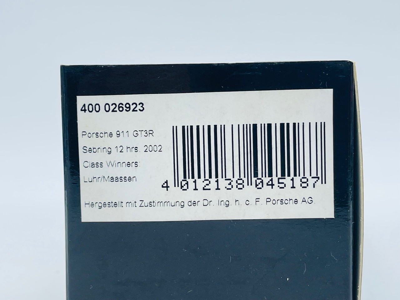 MINICHAMPS 400026923 PORSCHE 911 GT3 RS n°23 Sebring 2002 Winner GT Class 1.43