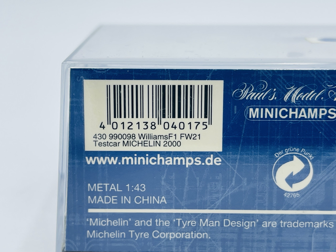 MINICHAMPS 430990098 WILLIAMS FW21 Test Car Michelin 2000 1.43