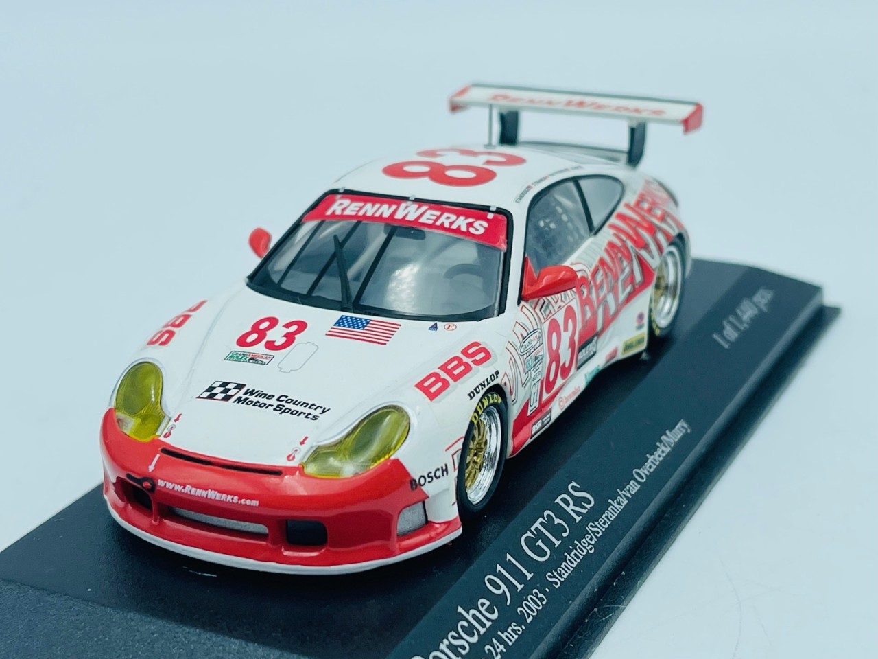 Quick view Panier Supprimer de la liste d'envies Liste d'envies MINICHAMPS 400016931... 39,00 € MINICHAMPS 400016931 PORSCHE 911 GT3 R n°31 Daytona 2001 Luhr-Fitzderald-Pobst-Menzel 1.43