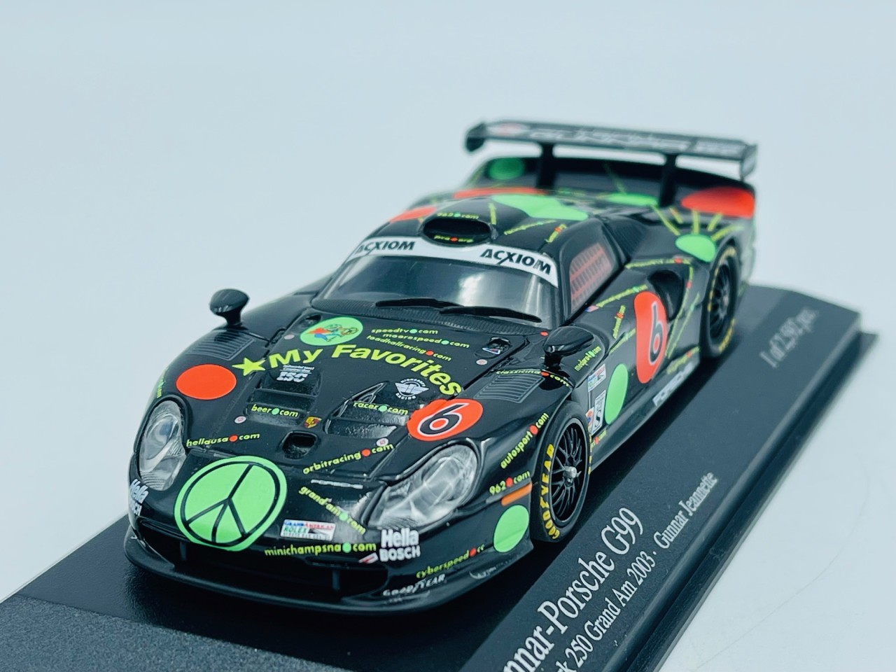 Quick view Panier Supprimer de la liste d'envies Liste d'envies MINICHAMPS 400036856... 19,00 € MINICHAMPS 400036856 GUNNAR-PORSCHE G99 n°6 Barber Park 250 Grand Am 2003 1.43