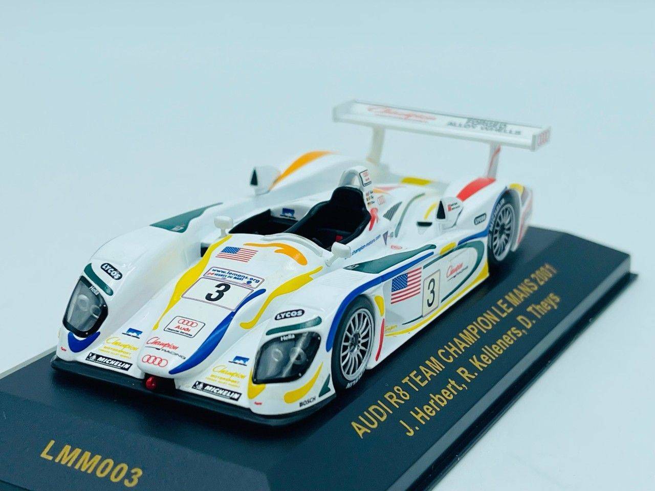 Quick view Panier Supprimer de la liste d'envies Liste d'envies IXO LMM003 AUDI R8 Team... 39,00 € IXO LMM003 AUDI R8 Team Champion n°3 Le Mans 2001 1.43