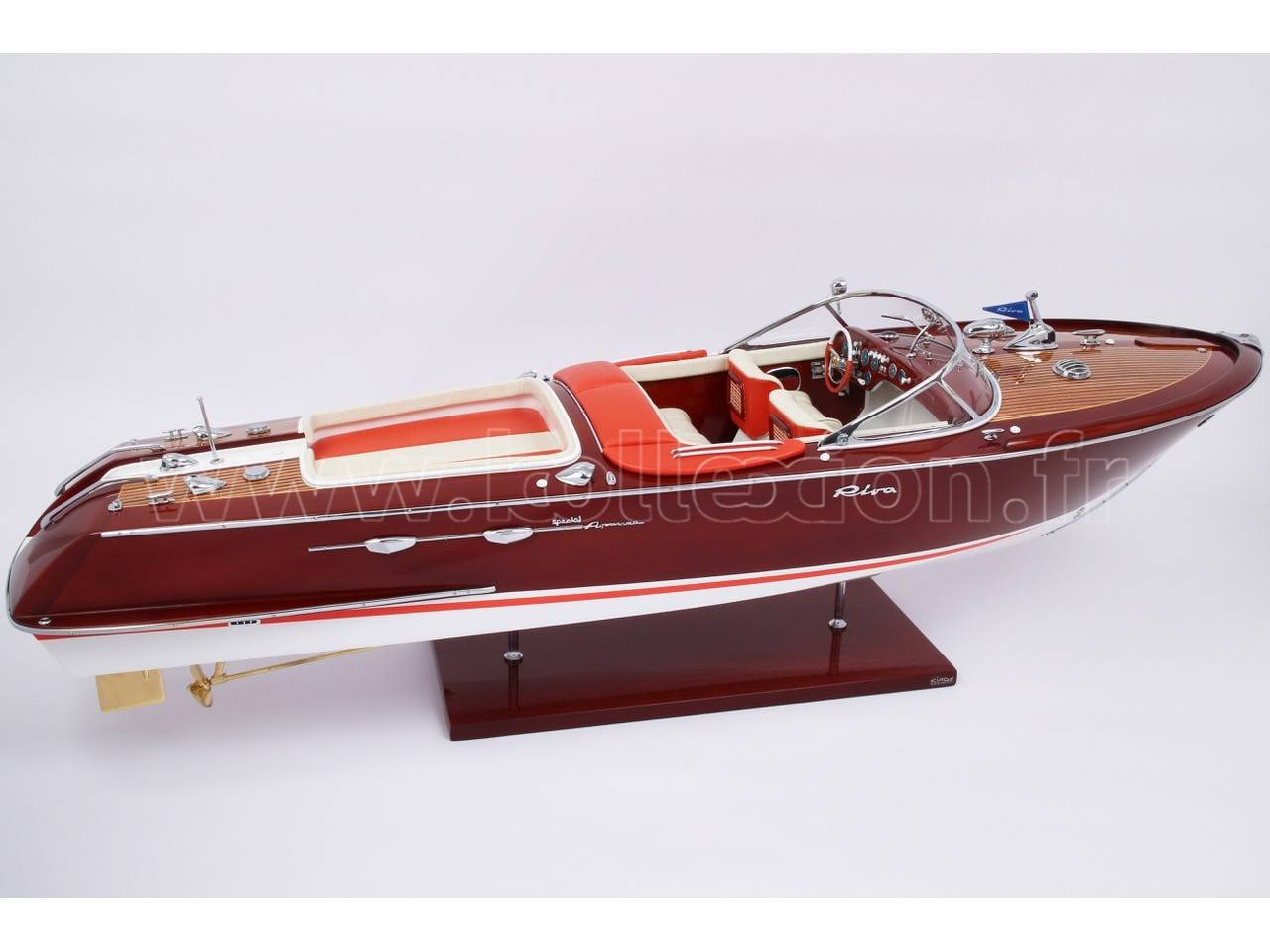 Véritable objet d’exception : Cette maquette officielle exclusive du Riva Aquarama Spécial a été réalisée à l’échelle 1/10ème en partenariat avec le chantier RIVA.