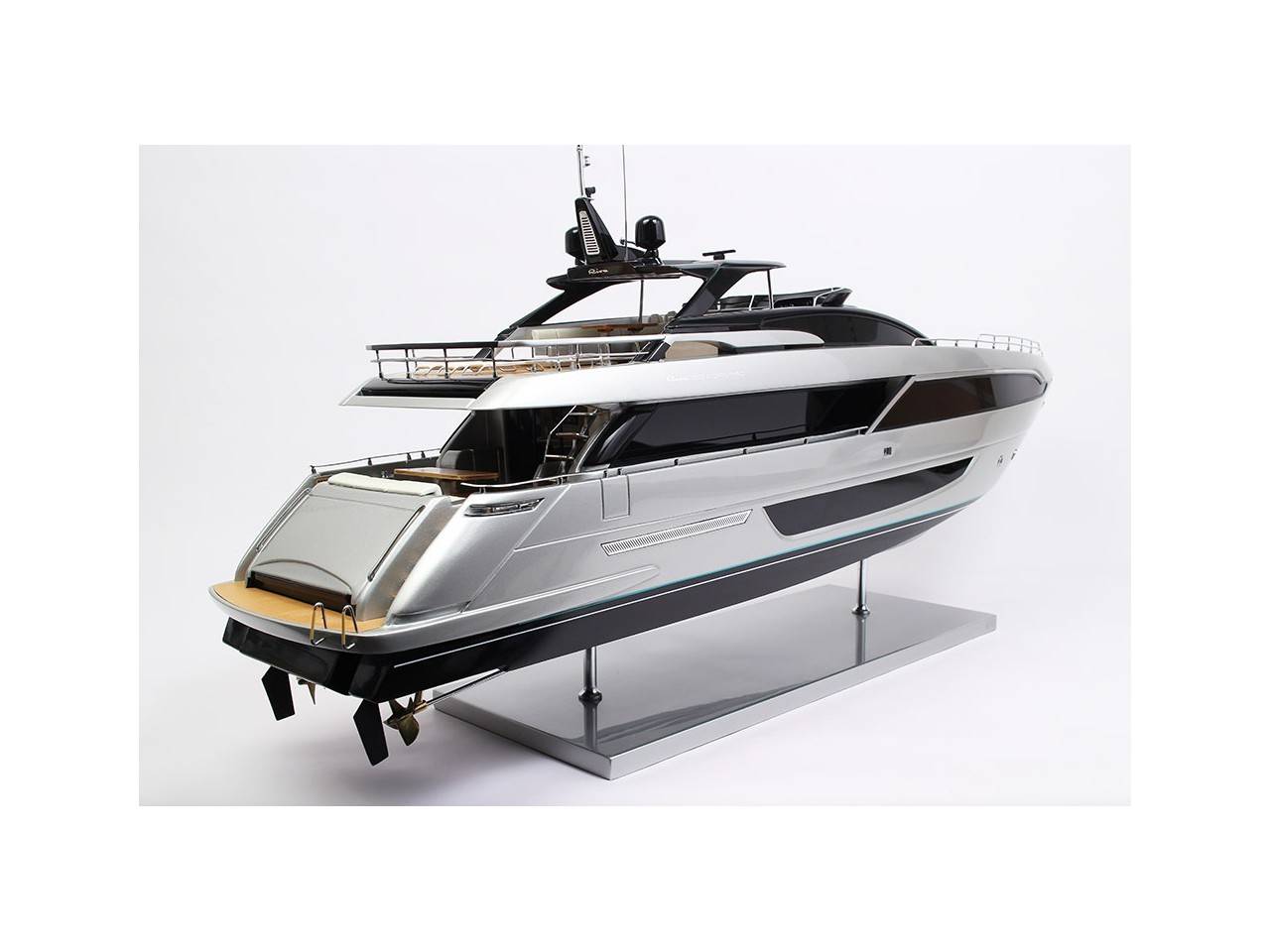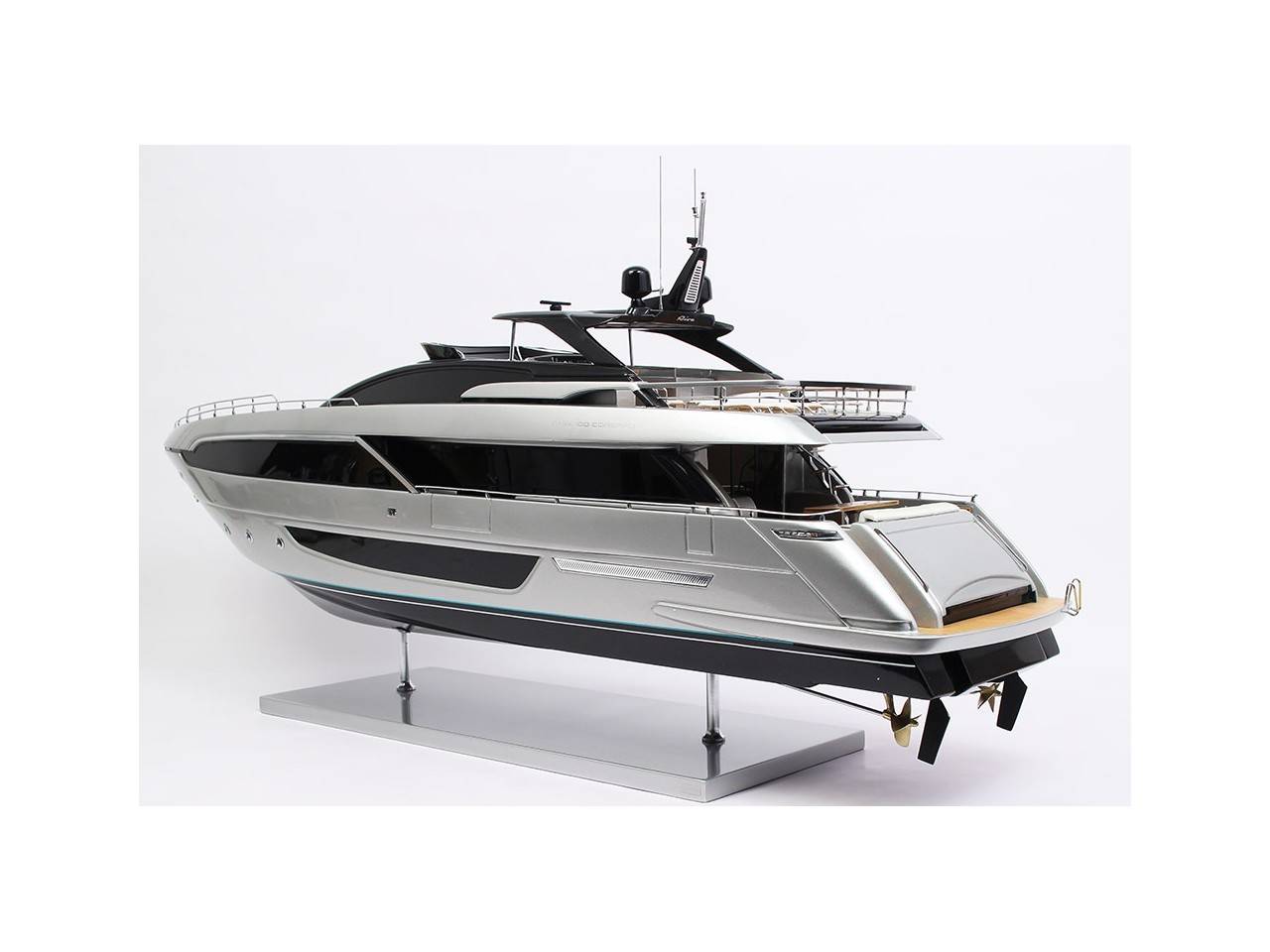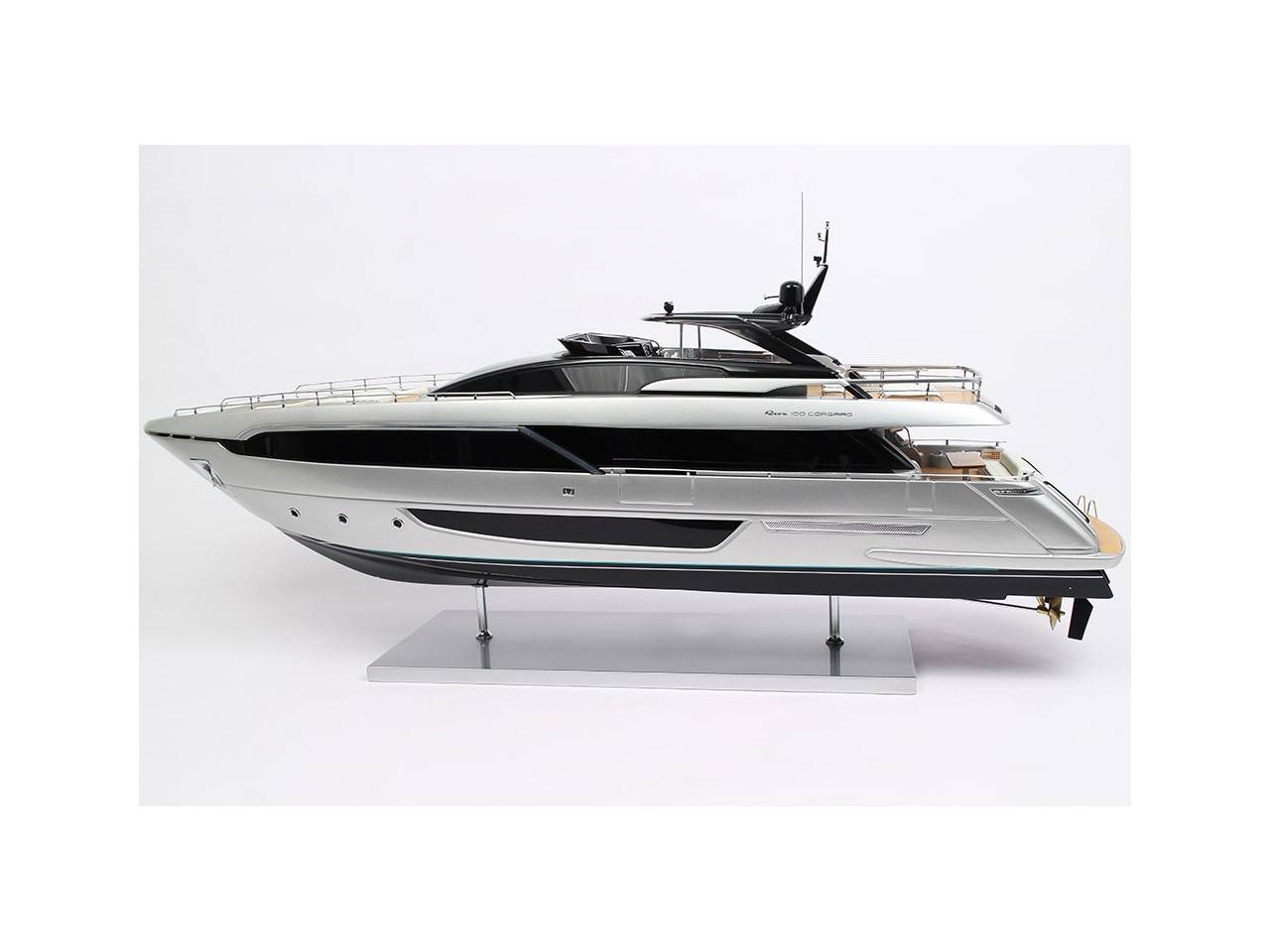 Cette maquette officielle exclusive du RIVA 100′ CORSARO, d’une longueur de 100 cm, a été réalisée à l’échelle 1/30ème.