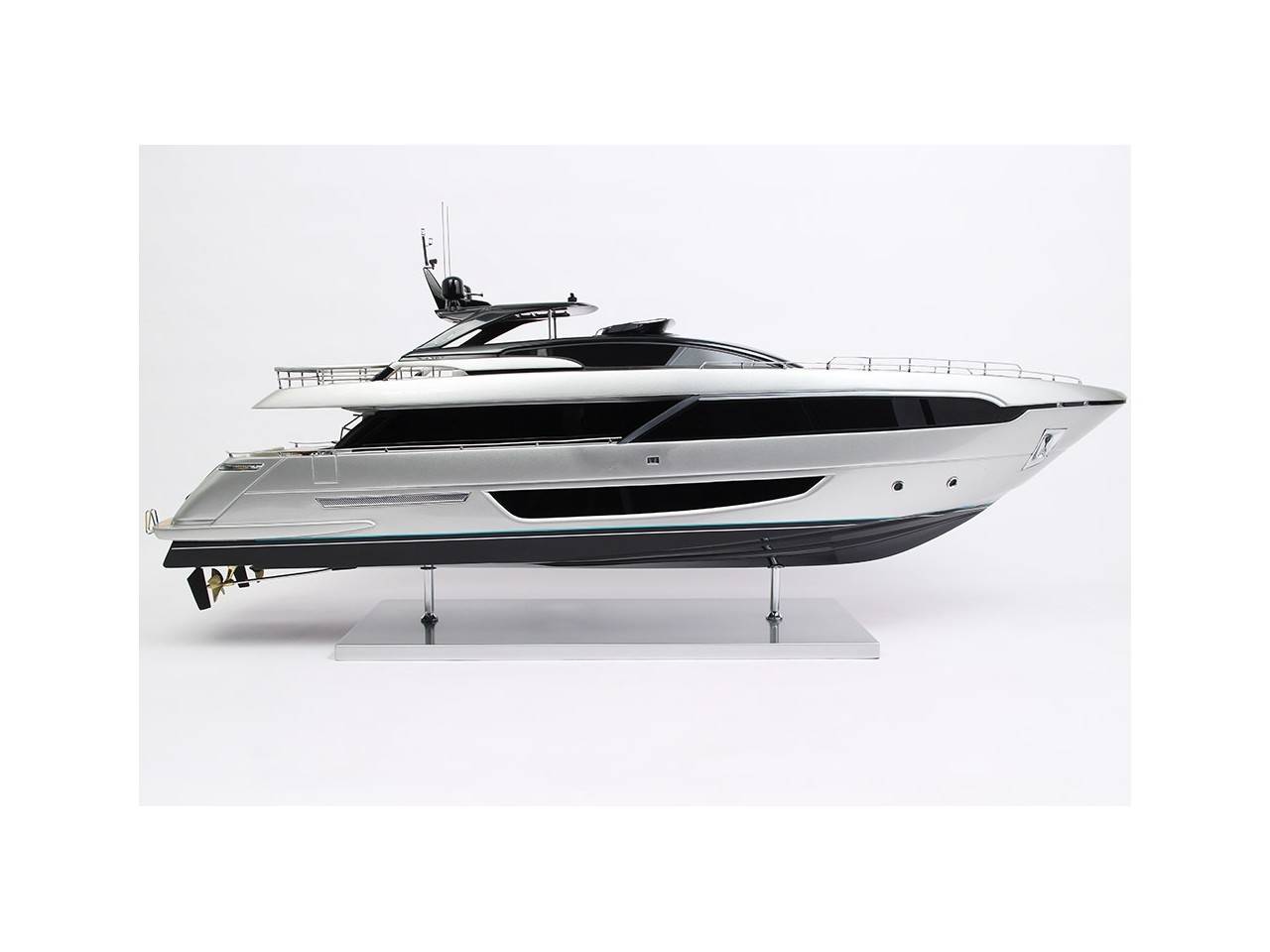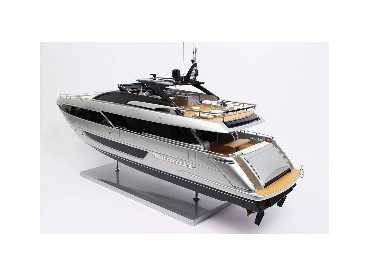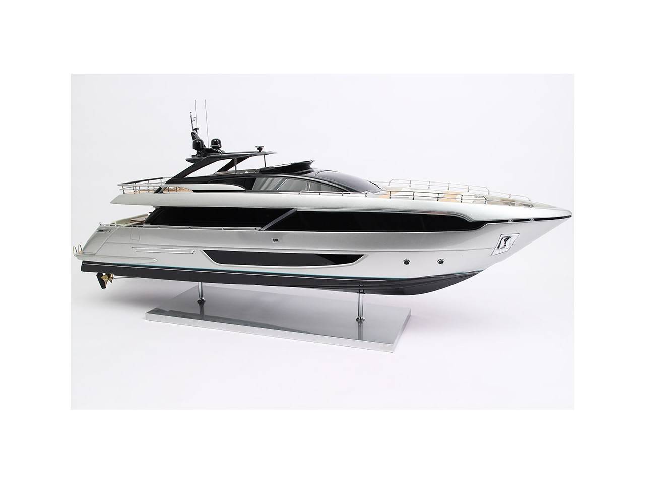 Cette maquette officielle exclusive du RIVA 100′ CORSARO, d’une longueur de 100 cm, a été réalisée à l’échelle 1/30ème.