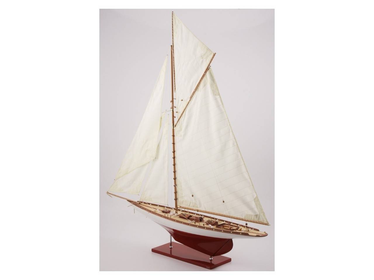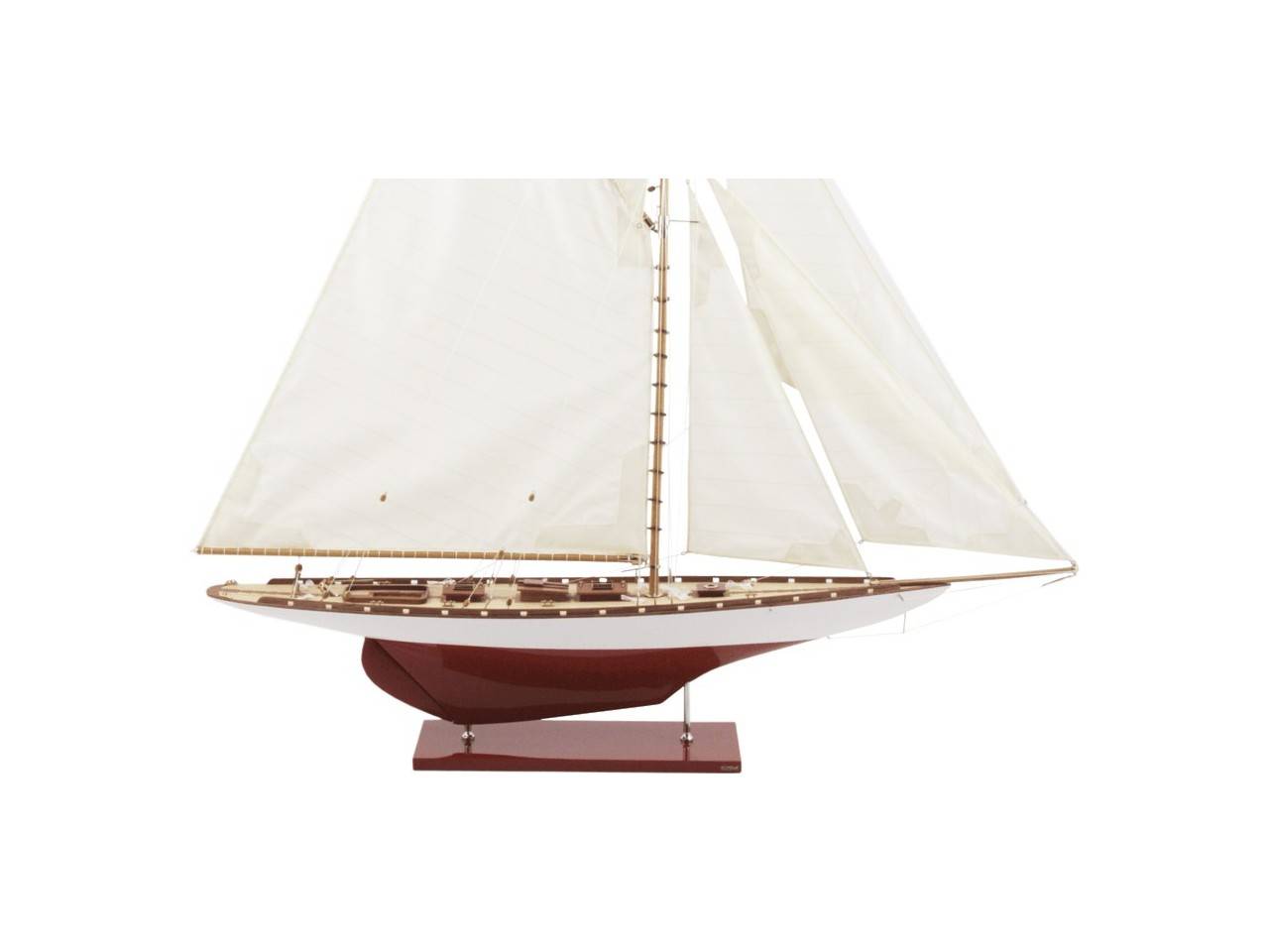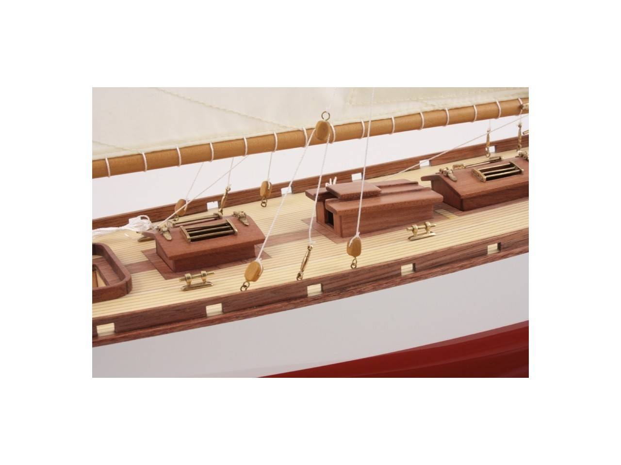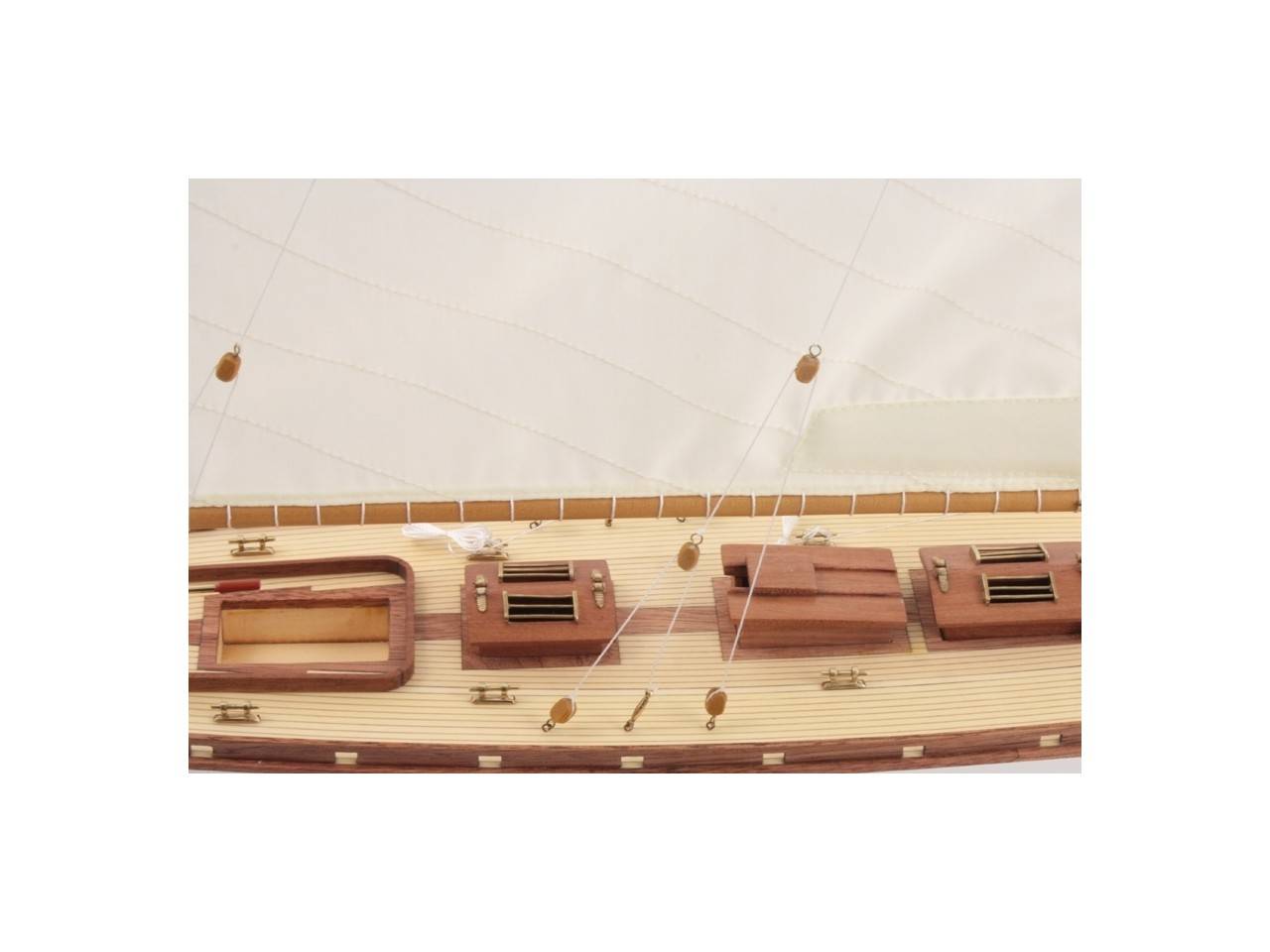 Accastillage réalisée en laiton, voiles cousues à la main.
