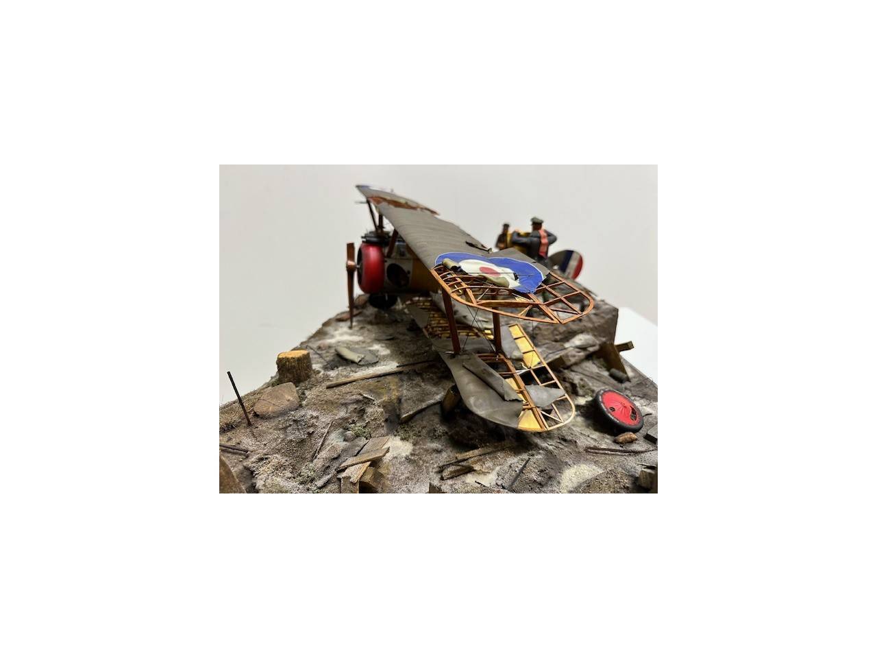 BUILT-UP DIORAMA AVION BIPLANE CAMEL échelle 1.16 Maquette unique exceptionnel sur socle 63x43 cm