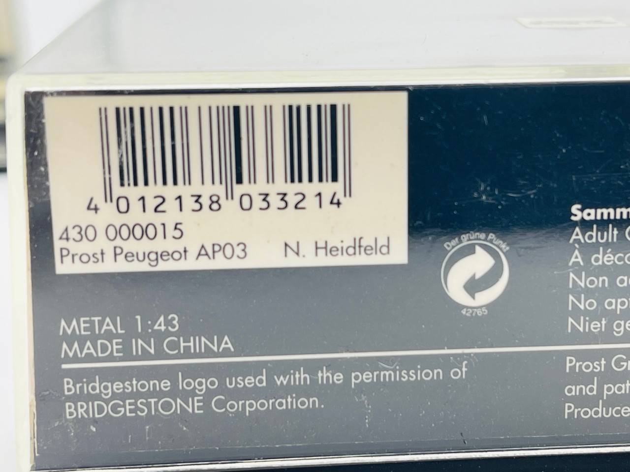 MINICHAMPS 430000015 PROST PEUGEOT AP03 n°15 N. HEIDFELD 1.43