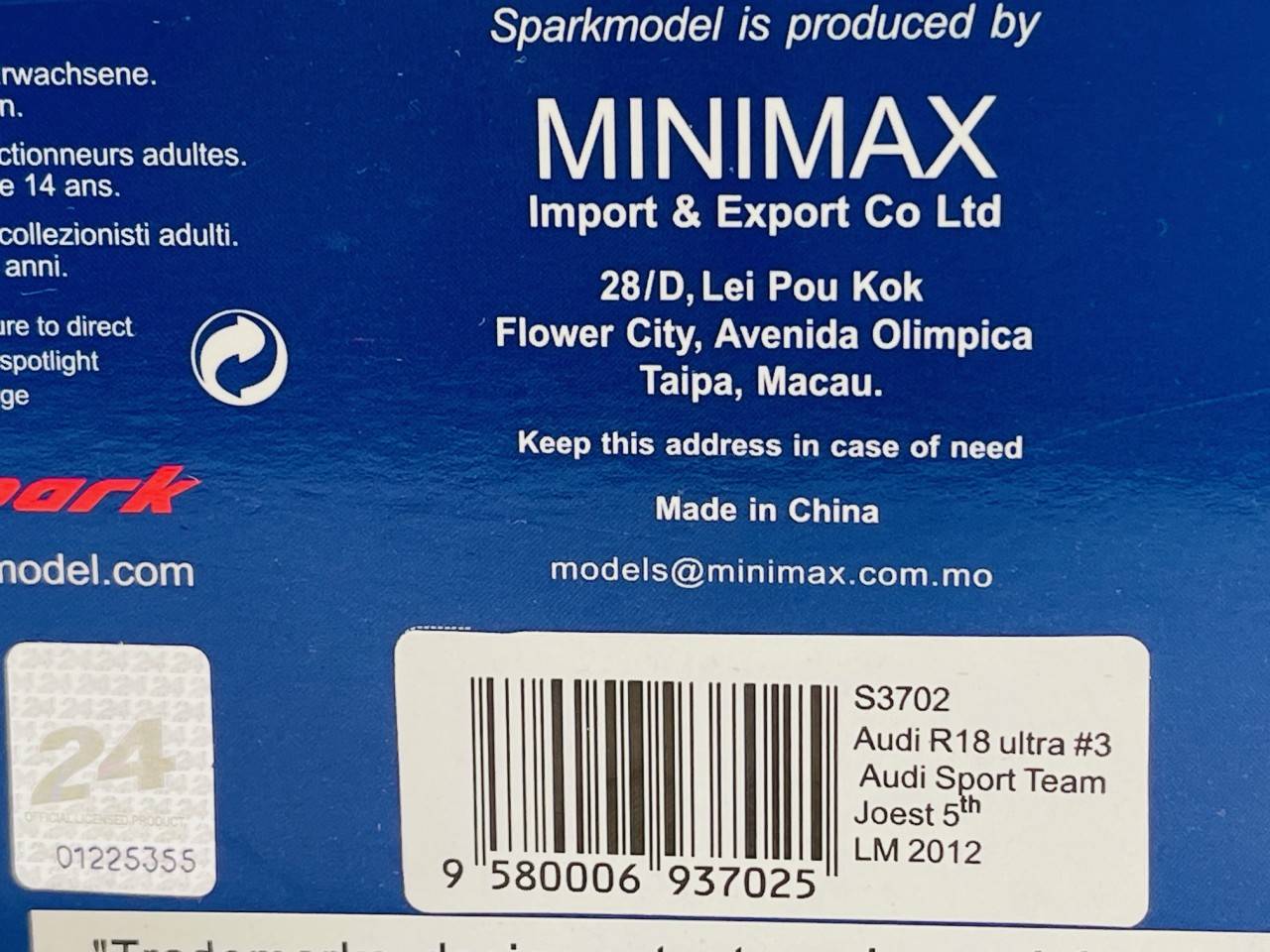 SPARK S3702 AUDI R18 n°3 Audi sport Team Joest 5th Le Mans 2012 Gene - Dumas - Duval 1.43