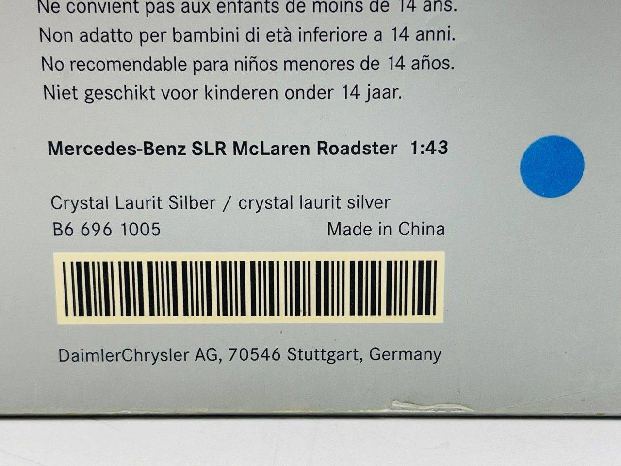 MINICHAMPS B66961005 MERCEDES BENZ SLR McLaren Roadster Crystal Laurit Silver 1.43