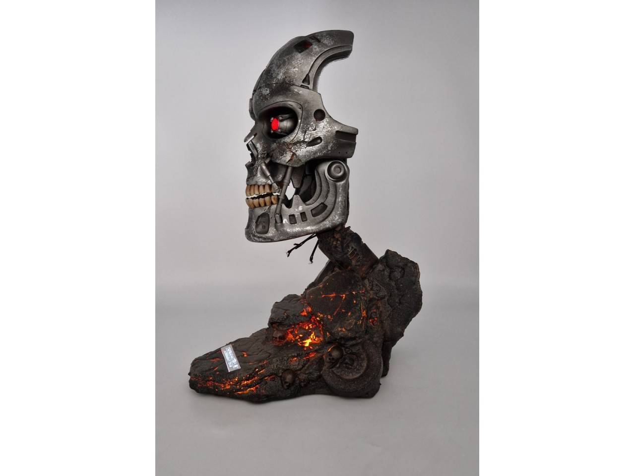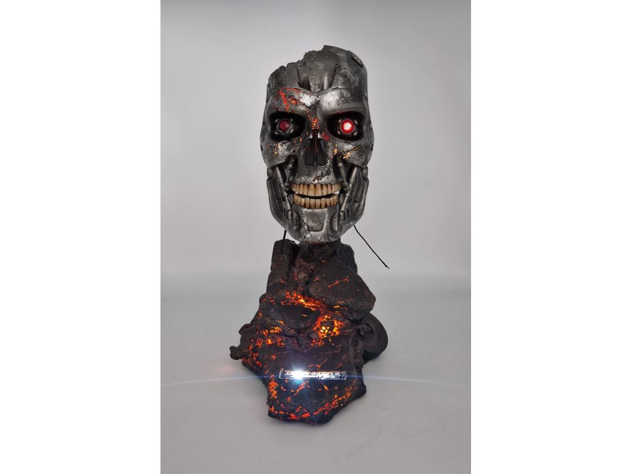 The T-800 Endoskeleton Art Mask with LED-lit eyes overlook a painstakingly detailed base showing the ruined city after “Judgment Day”. Standing at 18 inches high and made out of electroplated cold-cast resin, this mask is definitely a must have for any Terminator fans’ collection.