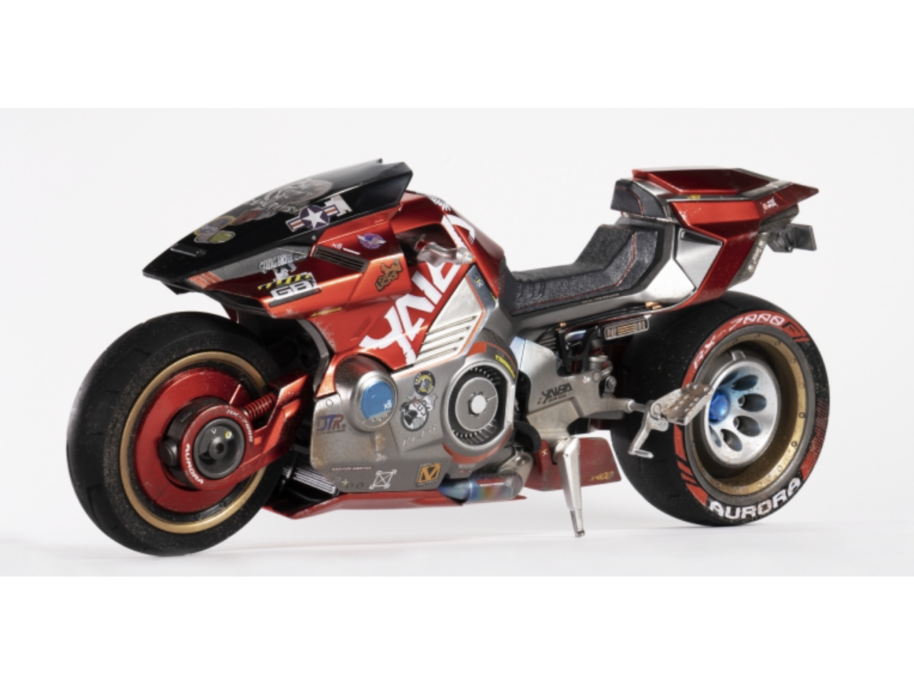 Superb set of futuristic PVC/ABS figurines from the Cyperpunk 2077 series made at 1/6 scale by PUREARTS. The set includes two articulated figures V man and V woman as well as a replica of the Yaiba Kusanagi motorcycle. The set is completed by the spider-bot drone as well as an object kit reserved for each character (Kang Tao G-58 Dian, articulated arm with Mantis Blade or hands holding the Constitutional Arms M2067 Defender...) . The futuristic video game atmosphere is guaranteed by the LED devices hidden in the collar of the leather jackets as well as the front/rear lighting options of the motorcycle. Box