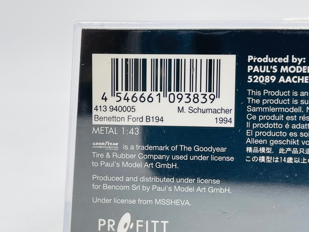 MINICHAMPS 413940005 BENETTON B194 Michael Schumacher World champion 1994 – Pro-Fitt edition (1000 pcs) 1.43