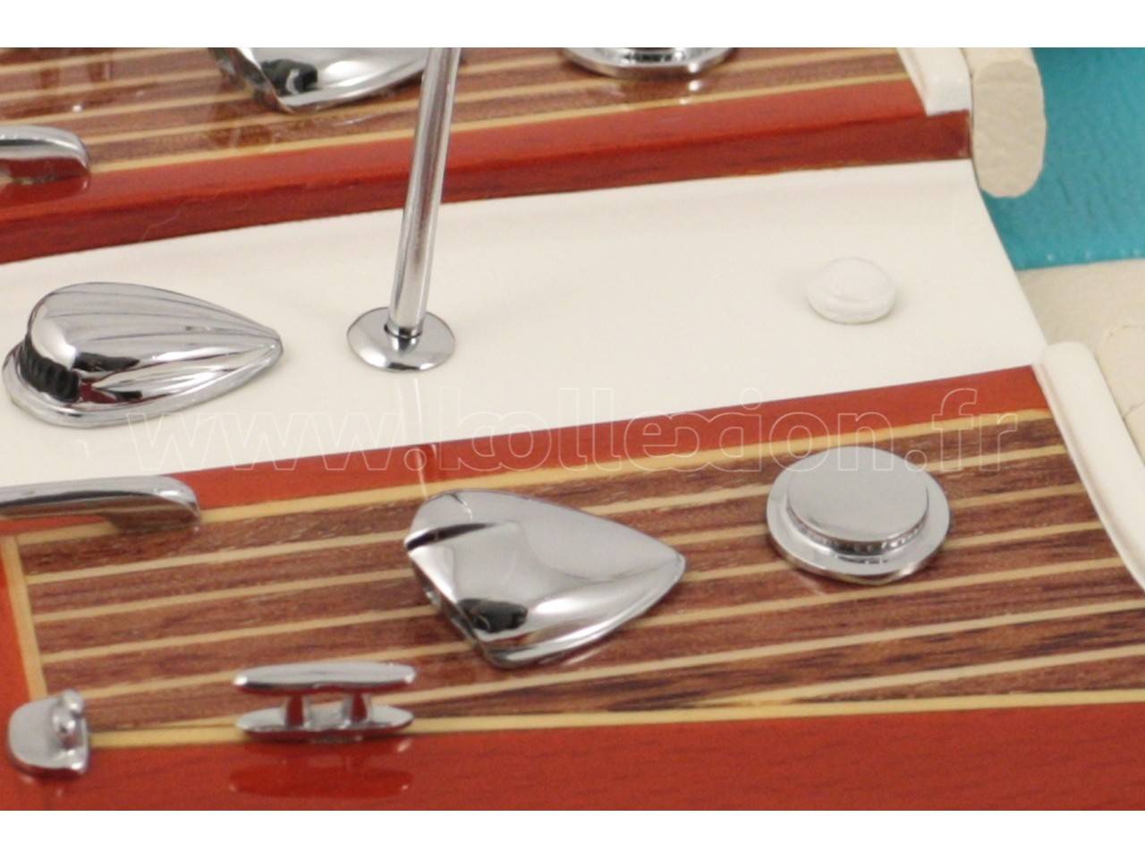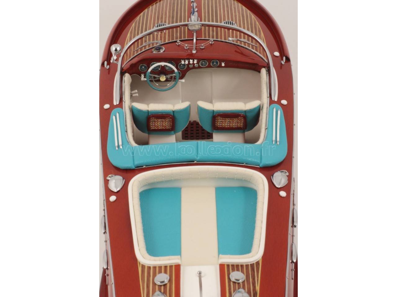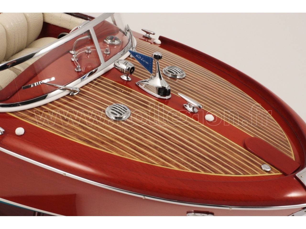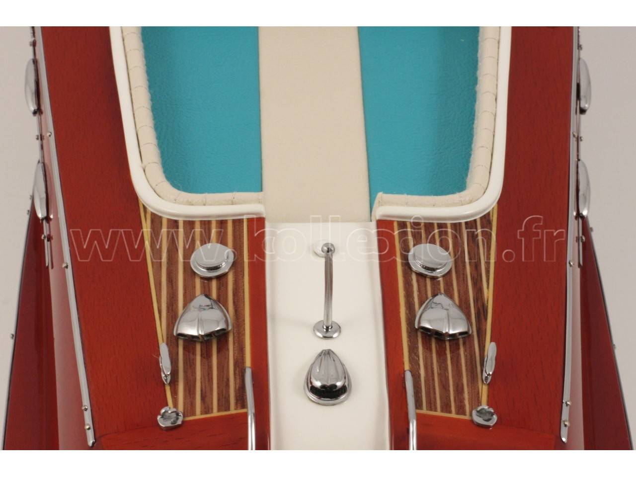 This official model boat of RIVA AQUARAMA SPECIAL( scale 1:15) is built in mahogany exactly as the real boat with fitting parts ( chrom brass) built by our jewellers. Real upholstery.